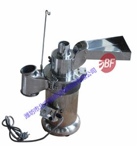 4、接上電源線,開機,從物料口漸進喂入物料,入料不宜過快過多,入料時需慢慢進料(特別是用細篩網時)注意電流表指針勿超過10A,如果超過時,停止入料,讓藥物消化后,再進料。