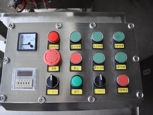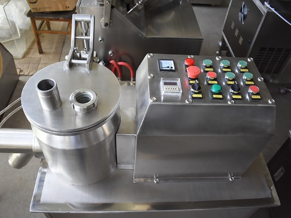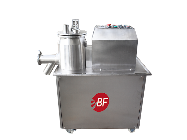 粉體物料與粘合劑在圓筒(錐形)形容器中,由底部混合槳充分混合成濕潤軟材,然后由側(cè)置的高速粉碎槳切割成均勻的濕顆粒。