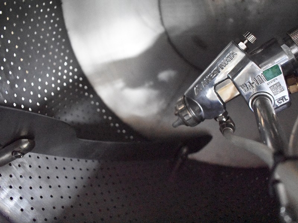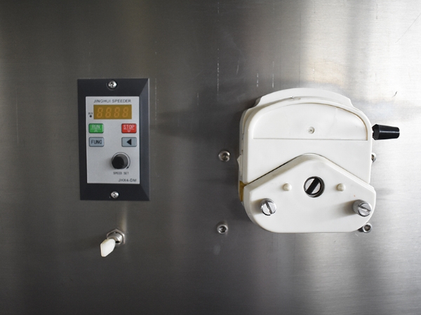 1、主機是包衣機的主要工作間,內有包衣滾筒,滾筒由不銹鋼篩孔板組成,門上裝有活動桿,桿端裝有可調介質,該具有自動頂針、扇形面寬、角度可調、不沾料之優點。滾筒的主傳動系統為變頻器控制的變頻調速機,滾筒的兩邊設熱風進風風道與排風風道,風道均安裝初、中、過濾器,確保進入工作間的熱風級別達到10萬級以上。