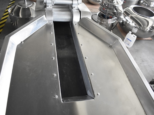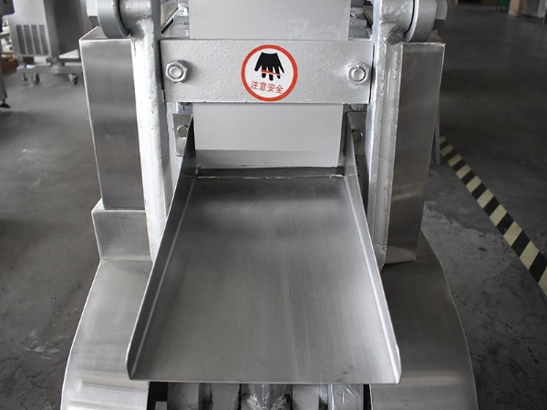 由電機、傳動系統、臺面、輸送帶、切藥等部分組成。這種切藥機適應性強、功率大,適膈切制長條形的根、根莖及全草類藥材。而球形、團形藥材則不適宜,操作時,將藥材堆放機器臺面上,啟動機器,藥材經輸送帶(為無聲鏈條組成)進入床切片,片的厚薄由偏心調節系統進行調節,剁式切藥機可將藥材切成、段、節、咀、絲等形狀。剁式切藥機常與振蕩篩配合使用,使切制后的飲片及時篩選、分等。