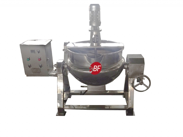 可傾反應鍋可蒸、煮、浸提、濃縮藥材,也可用于制作蜜丸中的煉蜜。可傾反應鍋由主體、支架、蝸輪、蝸桿等組成。夾層通入蒸汽加熱,或者使用電加熱。
