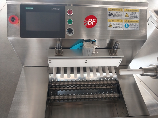2.采用光電傳感器控制切條長度,保證藥條長度一致,每條制品數量恒定,藥頭短小,且藥頭與成品分流,免去在成品中挑選藥頭。